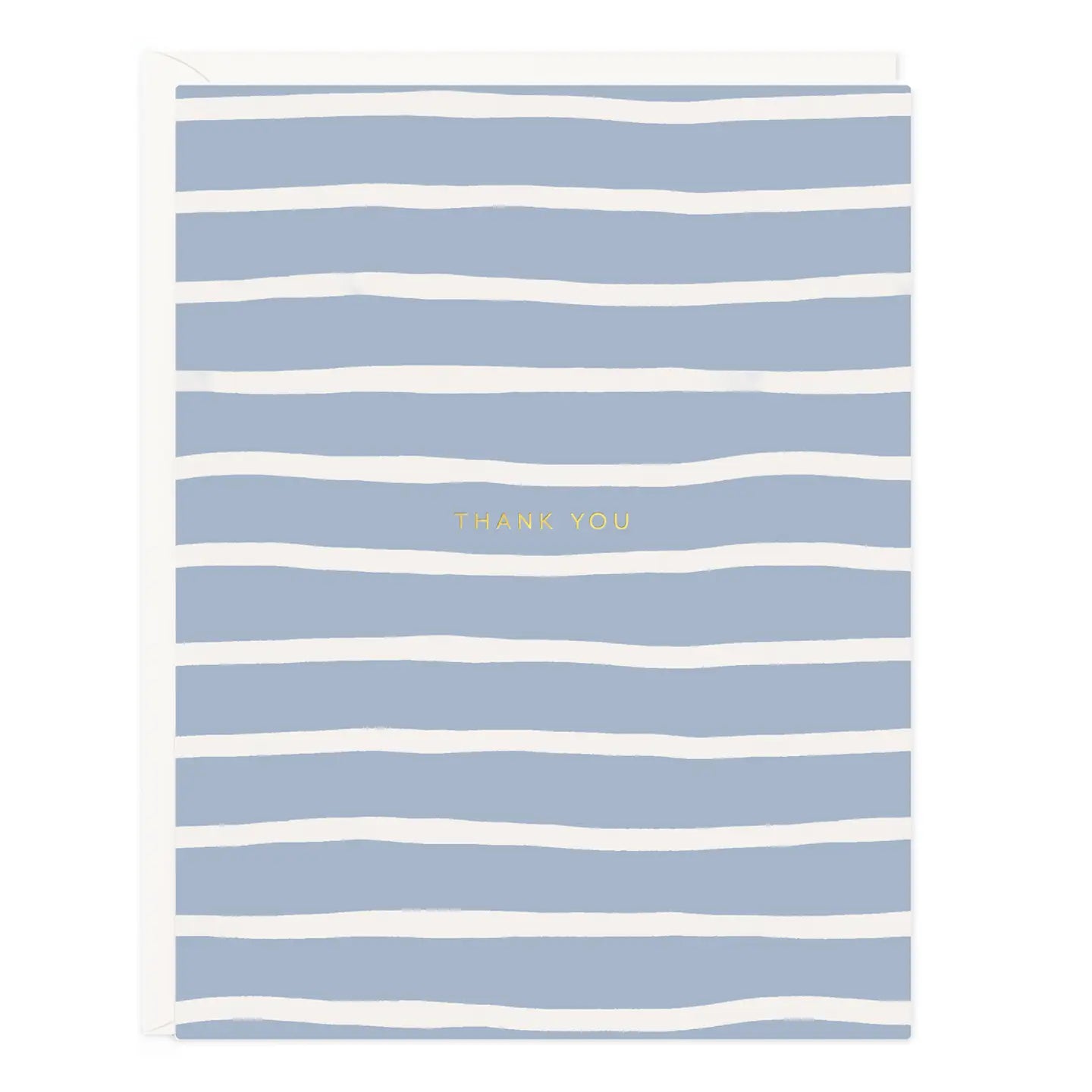 Digital printing with gold foil on crisp white heavyweight paper. White envelope.