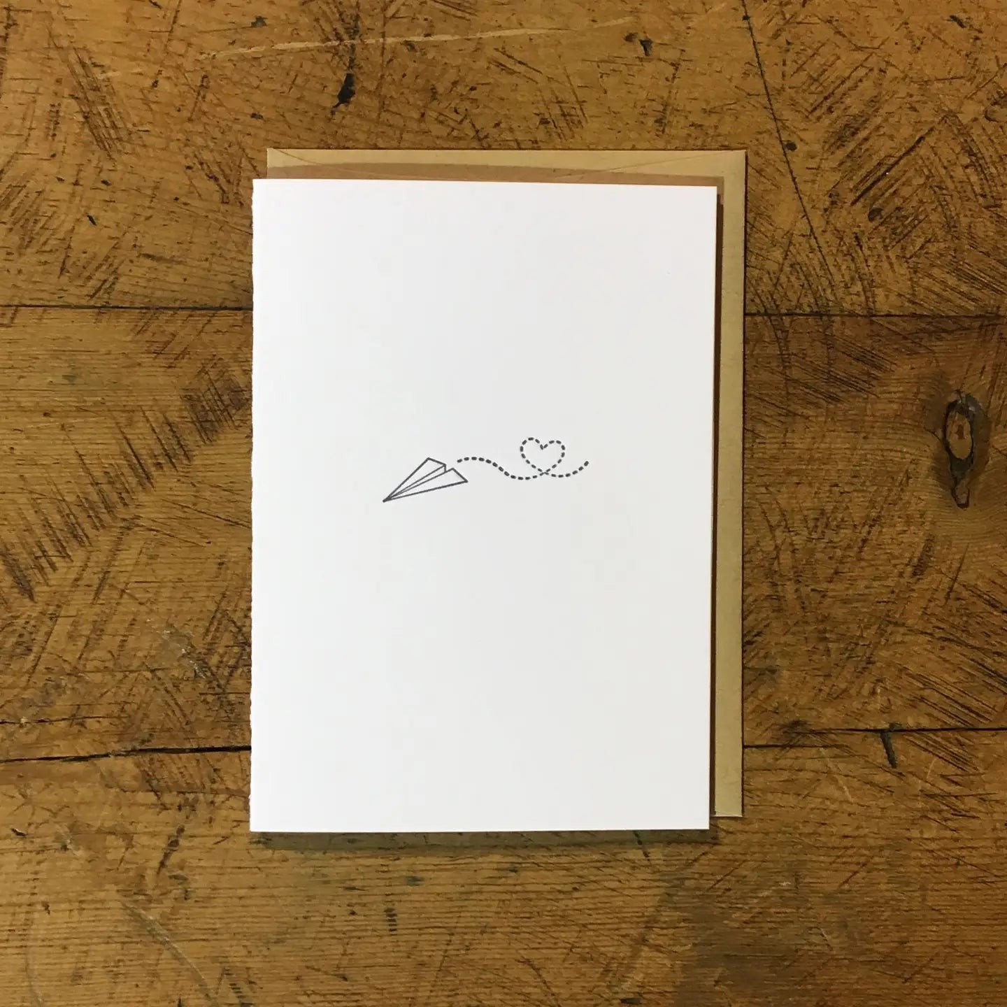 Letterpress printed in purple ink on 100% cotton thick cardstock. Kraft brown envelope.
