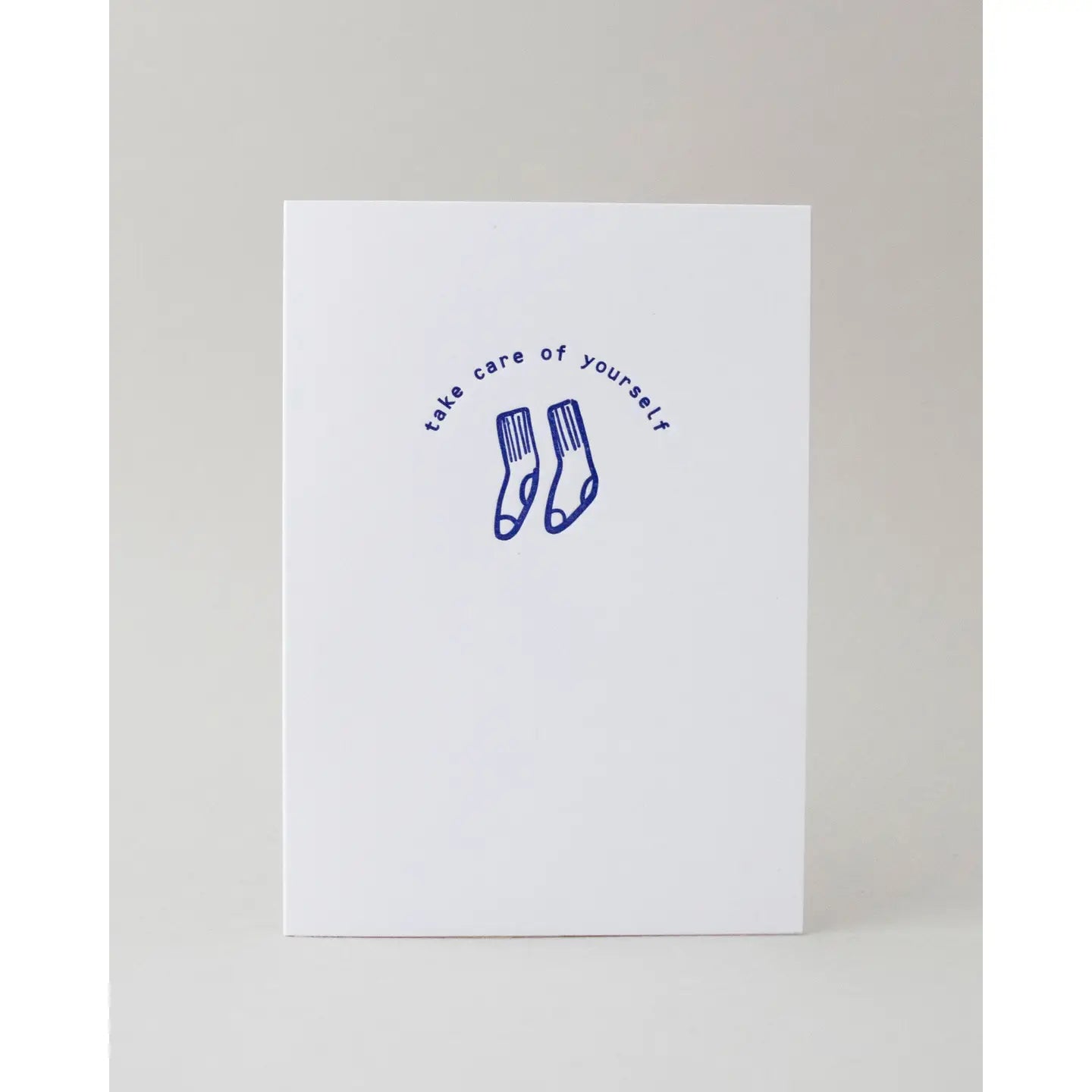 Letterpress printed on earth friendly hemp paper in true blue ink. Recycled envelope.